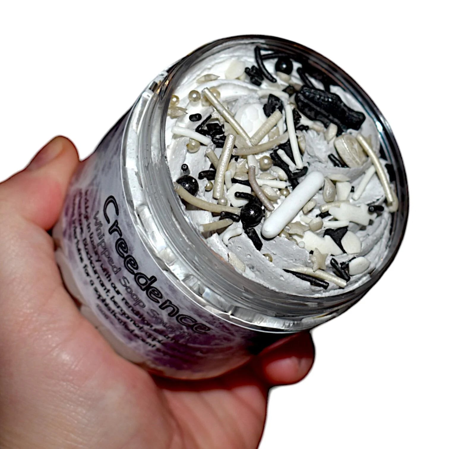 Introducing our luxurious creation: Whipped Soap by Cread for Him. Immerse yourself in a harmonious blend of scents, where the richness of bergamot, the sweetness of summery apple, and the allure of blackcurrant intertwine seamlessly. Underpinning this symphony is a woody base of smokey birch, adding depth and sophistication to your bathing experience.